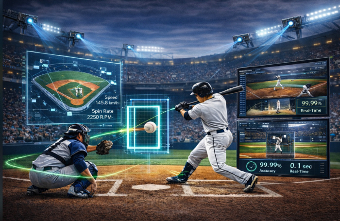 특히 120fps급 고속 카메라 제어 기술과 고속 프레임 영상 동기화 기술을 적용해, 투구와 타구처럼 순간적으로 발생하는 이벤트도 놓치지 않는 초고속 영상 수집 환경을 구축했다. 소프트웨어 측면에서는 객체 인식 기술과 3D 좌표계의 실시간 보정, 물리 알고리즘에 AI·딥러닝을 결합해 한반도 특유의 기후 조건과 한국 야구장 규격 등 다양한 변수에도 흔들림 없는 안정적인 트래킹 환경을 구현했다.