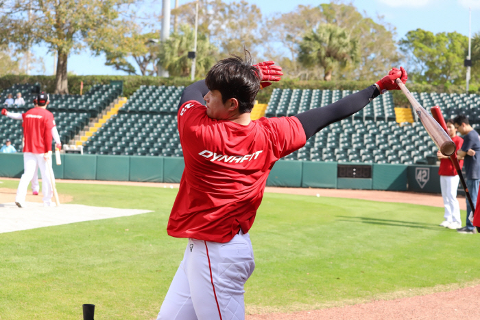 [베로비치(미국 플로리다)=스포츠조선 나유리 기자]김재환의 합류로 훨씬 위압감이 커진 중심 타선. 추락한 홈런 공장의 명성을 되찾을 수 있을까.