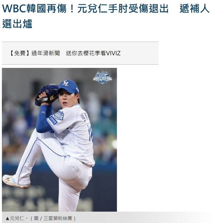 대만 ET투데이는 15일 “WBC 한국 대표팀에 또 부상 악재가 터졌다. 원태인이 팔꿈치 부상으로 낙마했다“고 긴급 보도했다.