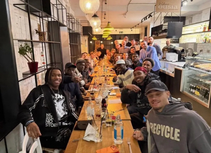 이 회식은 단체 사진이 SNS를 타고 퍼지며 알려졌다. 사진 속에는 사비 시몬스, 제드 스펜스, 윌손 오도베르, 이브 비수마, 파페 사르, 데스티니 우도지, 케빈 단소, 마티스 텔, 굴리엘모 비카리오, 주앙 팔리냐, 페드로 포로, 미키 판 더 펜 등이 있었다. 선수들은 모두 캐주얼 복장이었고, 모자를 쓴 선수들도 제법됐다. 투도르 감독은 코칭스태프와 함께 뒤 쪽에 서 있었던걸로 보인다.