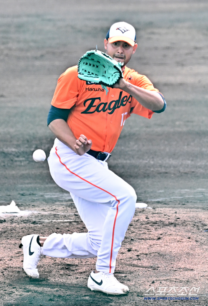 최고 152km 직구와 빠르게 떨어지는 최고 141km 커브를 앞세워 지바 롯데 타선을 압도했다. 무사 1루 위기에서 유격수 심우준이 2번 타자 테라치의 강습 타구를 깔끔하게 처리하며 한숨을 돌렸다. 직후 에르난데스는 박수로 고마움을 전했다.