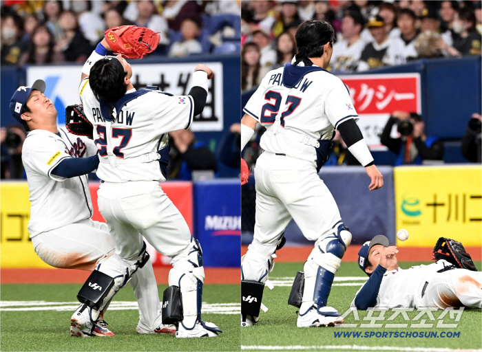 파울 라인 안쪽으로 떠오른 타구를 향해 박동원이 두 팔을 벌리며 자신이 잡겠다는 의사를 표시한 그 순간, 박동원을 미처 보지 못한 1루수 문보경이 공을 향해 달려들었다.