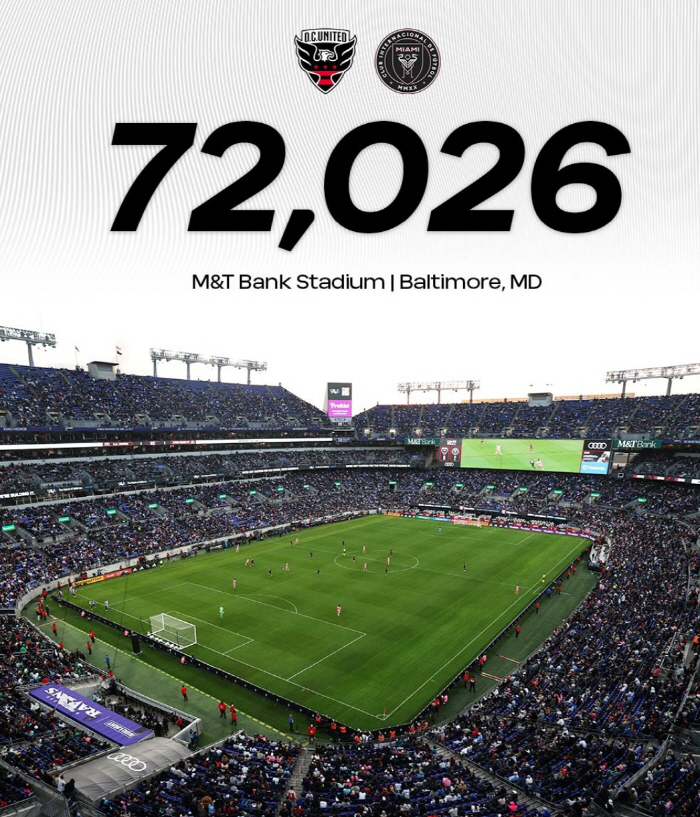 DC 유나이티드는 메시를 맞아 안방인 2만석의 아우디 필드가 아닌 7만여석 규모의 M&T 뱅크 스타디움에서 홈경기를 개최했다. 역시 메시였다. 팬들이 화답했다. DC 유나이티드 구단 역사상 최다 관중인 7만2026명이 입장했다.