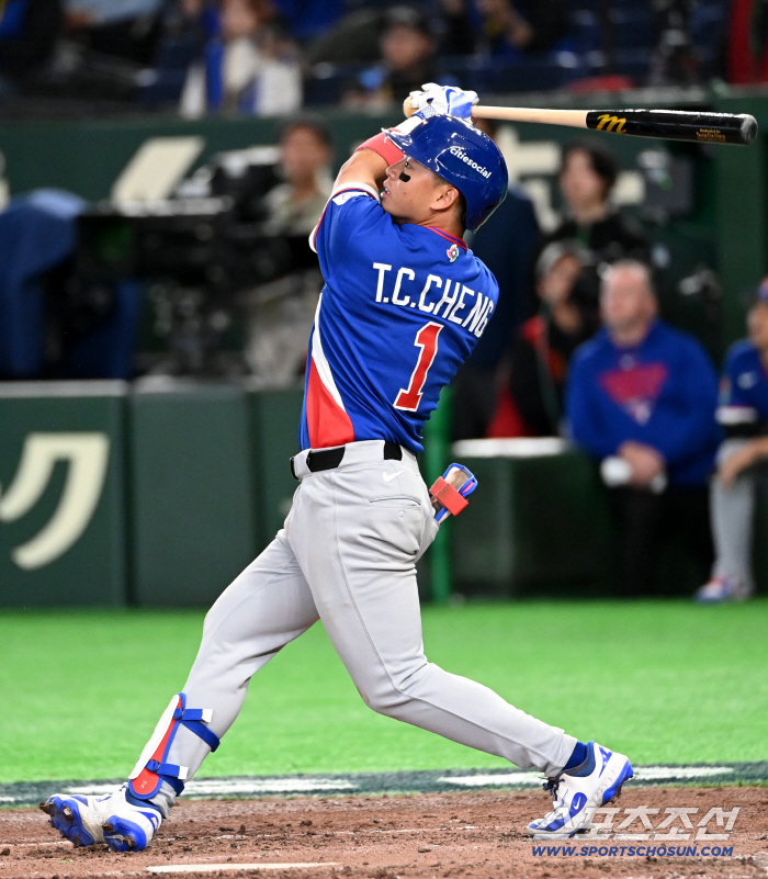 하지만 기쁨도 잠시. 대만이 6회초 곧바로 앞서나갔다. 1번 정쭝저가 달아나는 솔로포를 때려낸 것이다. 풀카운트 승부를 벌인 곽빈과 정쭝저. 발 빠른 정쭝저를 출루시키지 않기 위해 곽빈은 회심의 156km 강속구를 가운데로 꽂았다. 정쭝저는 욕심내지 않고 가볍게 툭 컨택트를 했는데, 방망이 중심에 맞은 공은 쭉쭉 뻗어나가 좌중간 펜스를 훌쩍 넘어갔다. 처음에는 플라이가 될 걸로 보였지만, 강속구에 정타가 나오니 타구에 힘이 제대로 실렸다.