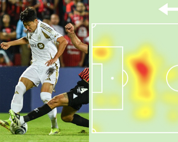 손흥민은 18일(이하 한국시각) 코스타리카 알라후엘라의 에스타디오 알레한드로 모레라 소토에서 열린 리가 데포르티보 알라후엘렌세(코스타리카)와의 2026년 북중미카리브축구연맹(CONCACAF) 챔피언스컵 16강 2차전에 선발 출전해 풀타임을 소화했다. '소득'은 없었다. 90분 동안 단 2개의 슈팅을 날렸지만, 그중 한 개도 골문으로 향하지 않았다. 공을 잡으면 '버퍼링'이 떴고, 종종 템포도 끊었다. 지난해 8월 댈러스전에서 환상적인 프리킥으로 골네트를 갈라 'MLS 올해의 골'로 선정된 마법의 기회가 다시 찾아왔다. 그러나 그의 프리킥은 수비벽에 막혔다. 컨디션, 발끝 감각이 정상 궤도에 오르지 않았다는 걸 확인할 수 있다.