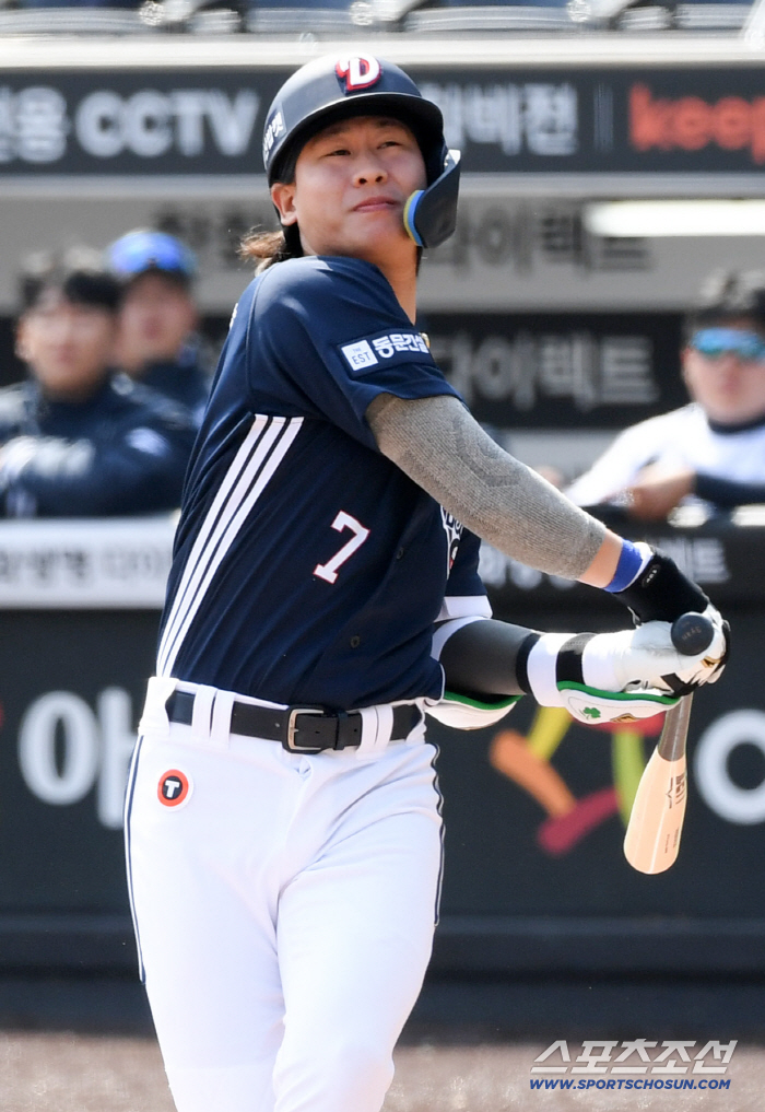 김 감독은 원래 시범경기 초반 정수빈-박찬호 테이블 세터로 오더를 짰다. 하지만 15일 삼성 라이온즈전부터 박찬호를 1번에 기용했다. 그런데 난리가 났다. 홈런 포함 3타수 2안타 3타점 2득점 대폭발. 그 전 키움 히어로즈전 두 경기씩은 소박하게(?) 안타 1개씩만 치던 박찬호였다.