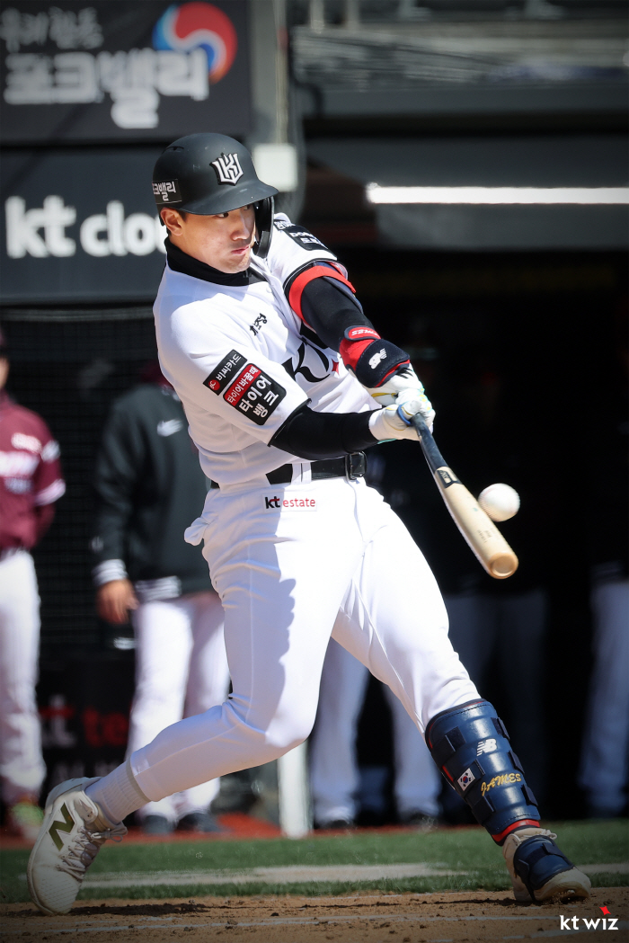 [수원=스포츠조선 정현석 기자]2026 월드베이스볼클래식(WBC)에서 맹활약 하고 돌아온 안현민이 복귀 첫 경기부터 공수에서 강력한 모습으로 벤치를 흐뭇하게 했다.