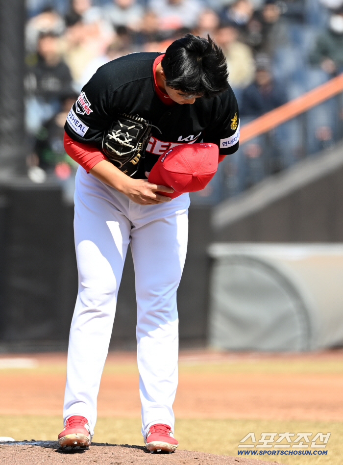 이 감독은 “(김)태형이한테 계속 이야기했던 게 있다. 차라리 볼넷 주지 말고 맞으라고 했다. 안타 맞아 나가는 거야. 타자들이 잘 친 것이기에 크게 개의치 않는다. 지금처럼 맞는 것은 그렇게 맞으면서 커야 되는 게 맞다. 볼넷 안 주고 맞아서 나가는 것은 충분히 앞으로 좋은 방향으로 갈 수 있다고 생각한다. 충분히 잘 던졌고, 구위도 충분히 만족한다“고 했다.