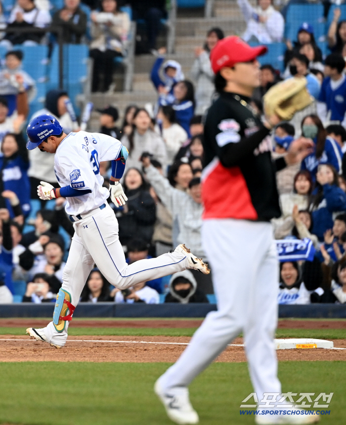 1사 후 첫 타석에서 KIA 선발 양현종의 3구째 113㎞ 높은 커브를 그대로 당겼다. 큰 포물선을 그린 타구를 우익수 나성범이 일찌감치 바라보기만 했던 비거리 115m의 홈런포. 김영웅은 이번 시범경기에서 썩 좋지 않았다.