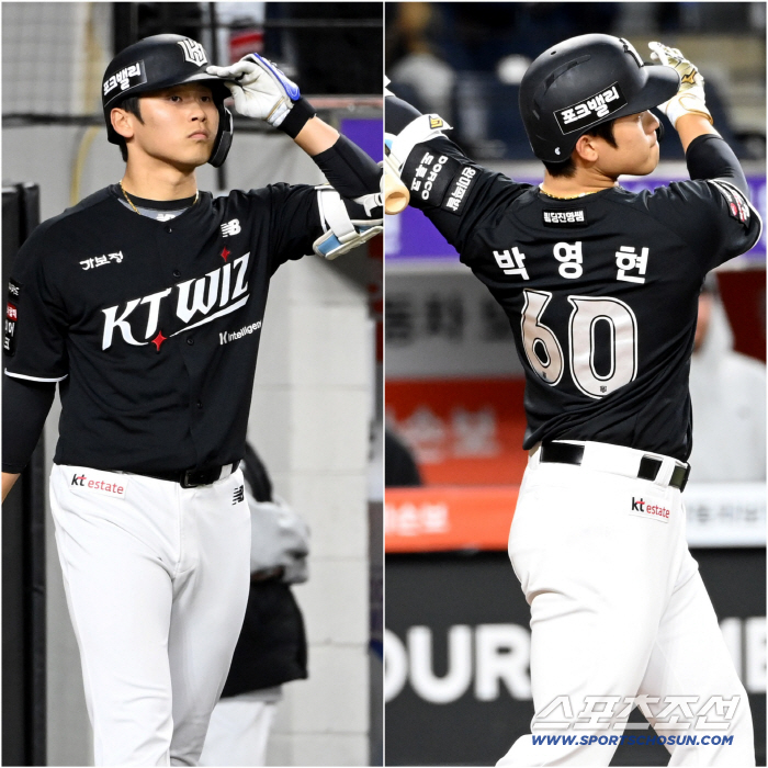 [대전=스포츠조선 김영록 기자] 갑자기 KT 위즈 더그아웃이 부산스러웠다. 갑자기 마무리 박영현이 배트를 잡고 그라운드로 나섰다.
