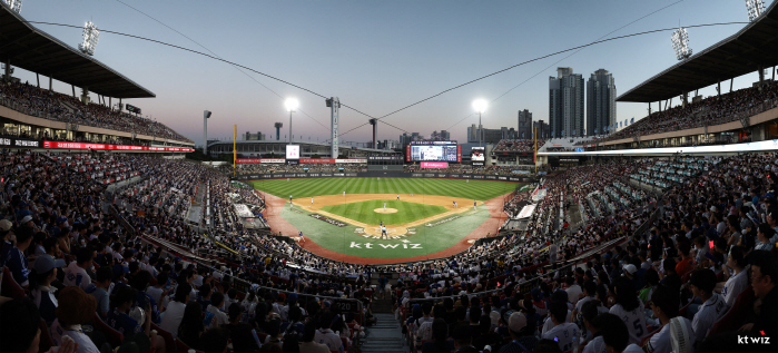 매년 '흥행 우려'를 달고 사는 KT지만, 최근 들어 적어도 수원 홈에서만큼은 그런 걱정을 할 이유가 없다. 1루 측 응원석은 푸른색 유니폼을 차려입은 삼성팬들이 채웠다지만, KT 팬들 역시 1루측 주요 응원석은 물론 2층, 외야까지 가득가득 채웠다. 인기팀으로 꼽히는 KIA 롯데 한화 삼성 롯데 LG를 상대로도 적어도 홈구장에서의 기세는 밀리지 않는다.
