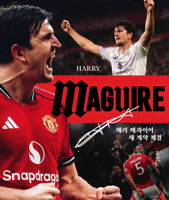 맨유는 7일(이하 한국시각) 매과이어와의 재계약을 발표했다. 2025~2026시즌을 끝으로 맨유와 계약을 종료되는 매과이어는 1년 계약 연장에 사인했다. 1년을 연장할 수 있는 옵션도 포함됐다.