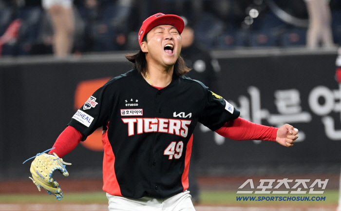 삼진이 선언되는 순간 김범수는 힘차게 포효했다. 마무리 정해영이 무너진 상황에서 급하게 마운드에 오른 김범수는 1점 차 리드를 끝까지 지켜내며 팀을 구했다.