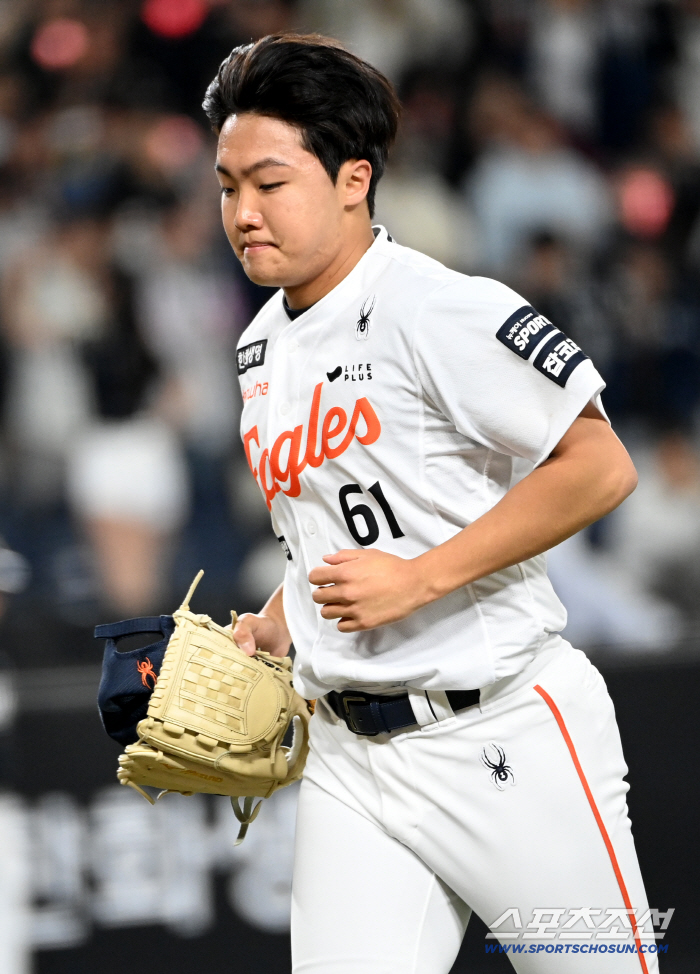 정우주는 아웃카운트 1개를 잡지 못하고 안타 2개와 볼넷 1개를 허용하며 3실점했다. 선두타자 박재현의 내야 안타가 시작이었다. 크로스 타이밍, 비디오 판독까지 했지만 세이프. 거기서부터 정우주가 흔들렸다.