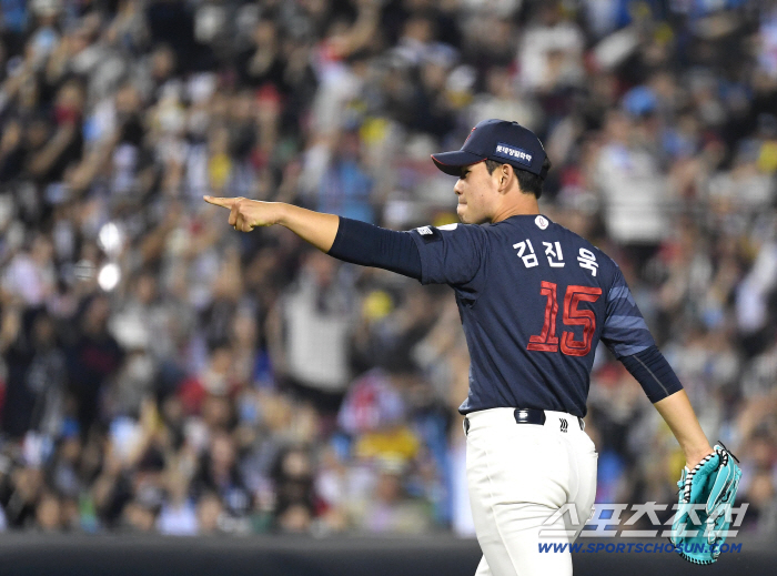 5회말 2사 후 홍창기에게 안타를 맞으면서 위기가 찾아왔다. 박동원과 7구 승부 끝에 볼넷을 줬다. 2사 1, 2루에 신민재를 상대했다. 김진욱은 2스트라이크 2볼에서 스트라이크존 바깥쪽 가장 낮은 코스에 147 패스트볼을 찔렀다. 신민재가 선 채로 삼진을 당했다.
