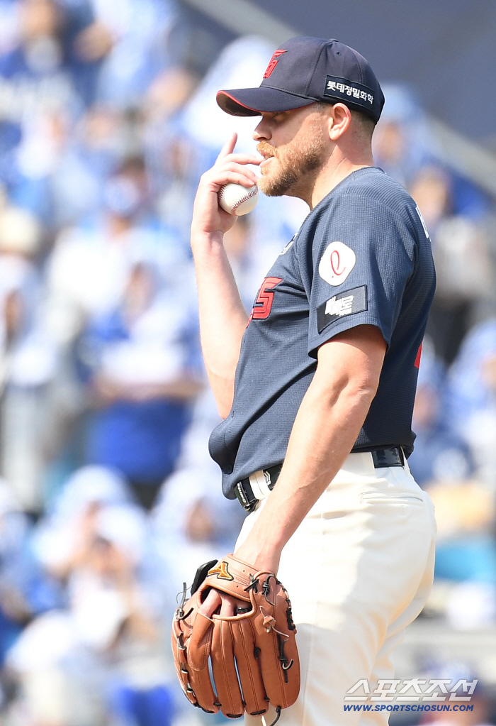 하지만 롯데 벤치의 생각은 달랐다. 김태형 감독의 '교체하라'는 지시가 있었고, 김상진 투수코치가 마운드에 올랐다.