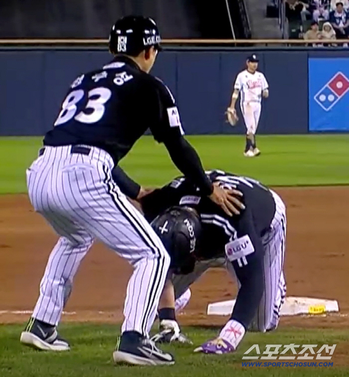 두산 3루수 이유찬은 오스틴이 넘어지는 장면을 보지도 못했다. 굳이 정수성 코치의 도움이 없었어도 본인 스스로 3루 베이스로 돌아갈 수 있었다. 물론, 정 코치는 넘어진 오스틴이 다칠까 봐 염려스러워 본능적으로 오스틴에게 손이 나갔을 것이다.