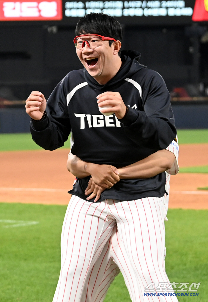 여기서 끝이 아니었다. 양현종이 잠시 방심한 틈을 놓치지 않은 최지민이 로진 세례를 퍼부으며 축하의 화룡점정을 찍었다.