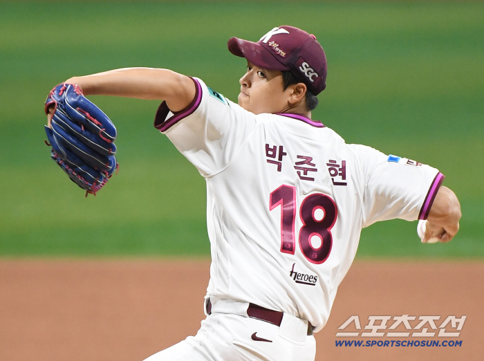 박준현이 1회초 2번 류지혁을 상대로 초구에 기록한 158.7㎞는 올시즌 같은 팀 안우진이 24일 삼성전에 기록한 160.3㎞에 이어 올시즌 두번째로 빠른 스피드. 한화 문동주(158㎞), 두산 곽빈(157.8㎞) 등 국내 대표 파이어볼러의 올시즌 최고 스피드보다 빠른 구속이었다. 1회를 삼자범퇴로 산뜻하게 출발한 박준현은 2회부터 세트포지션에서 제구가 흔들리며 매 이닝 실점 위기를 맞았다.