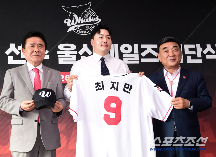 최지만은 27일 울산 문수구장에서 공식 입단식을 갖고 울산 웨일즈의 일원이 됐다. 현재 무릎 재활 중인 최지만은 7월 복귀를 목표로 준비한다. 최지만은 “야구는 혼자가 아닌 9명이 같이 달리는 스포츠“라며 백넘버의 의미를 밝혔다.