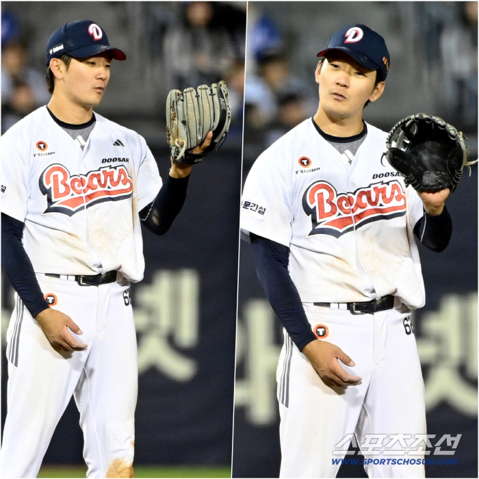 두산 베어스 안재석이 연이은 호수비에 스스로 놀란 듯 글러브를 이리저리 살펴보며 신기해하는 표정을 지어 눈길을 사로잡았다.